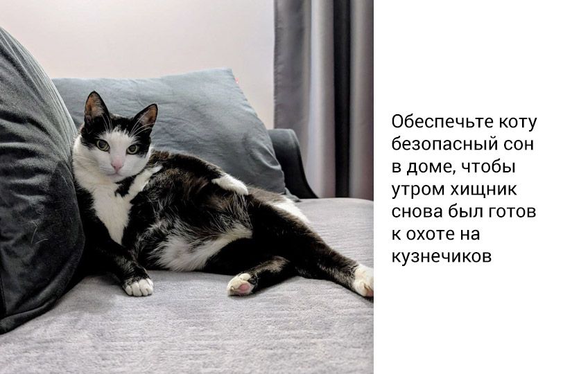 - Забирайте кота в дом до заката. Ночь — время активности бродячих собак и опытных местных котов, готовых к драке за территорию.