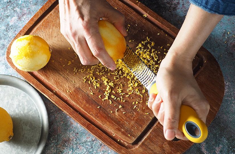 - Снимите цедру мелкой теркой, не задевая белую горькую часть.