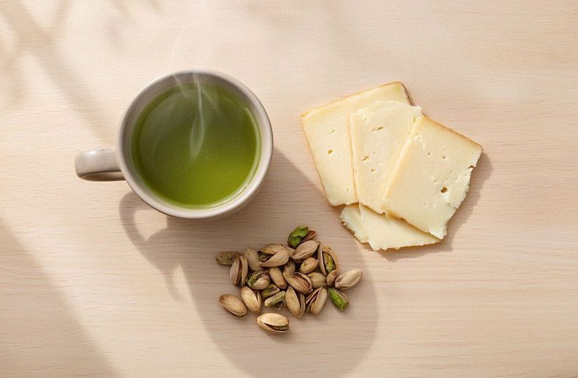Сыр и фисташки не спорят с зелёным чаем