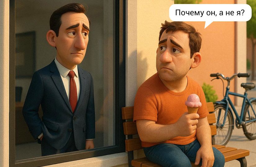 Ловушка. Воспринимать чужой успех как личное поражение. В итоге жизнь превращается в зачет, который невозможно сдать. Ведь если у друга дела идут в гору, это не значит, что у вас они пошли под откос.