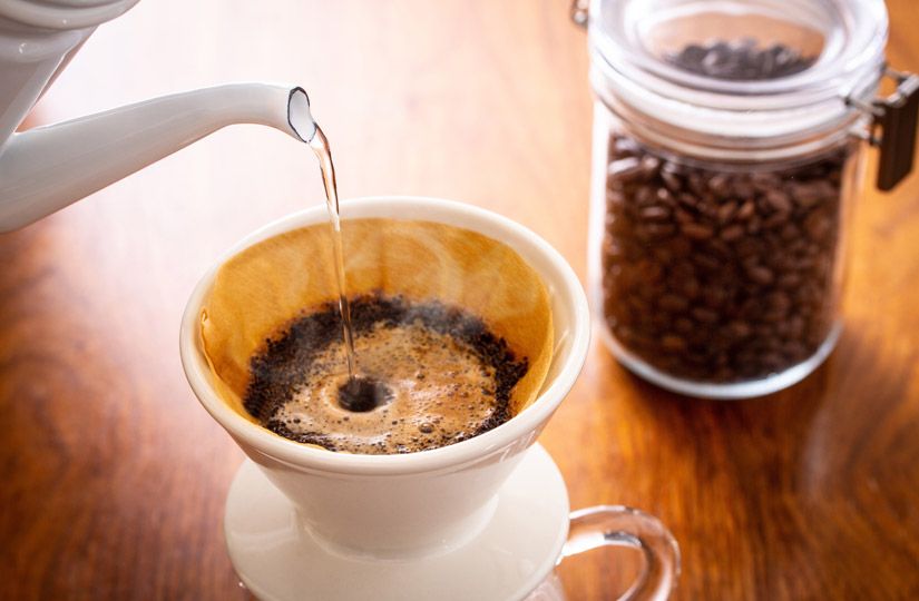 Техника приготовления: горячую воду тонкой струйкой проливают через плотный слой кофе в бумажном фильтре в течение четырех-пяти минут. Для сбалансированного вкуса соблюдается соотношение: 6 г кофе на 100 мл воды.